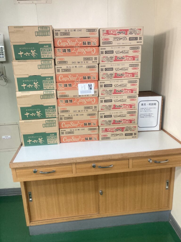最後に差し入れとして、カップ麺や飲み物を乗組員で分けて頂くよう説明すると、皆さん嬉しそうな反応をしてくださり、有意義な訪船活動になったのではと思います。